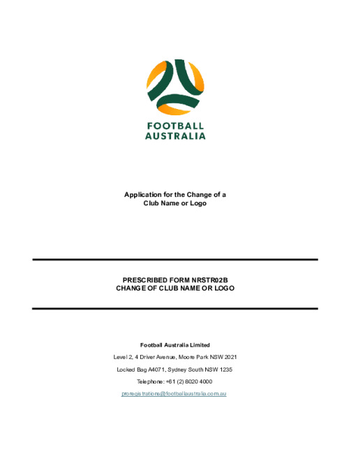 Name Prescribed Form NRSTR02B - Change of Club Name or Logo.pdf Official Date Wednesday, September 10, 2025 - 09:30 Document File Document Prescribed Form NRSTR02B - Change of Club Name or Logo.pdf