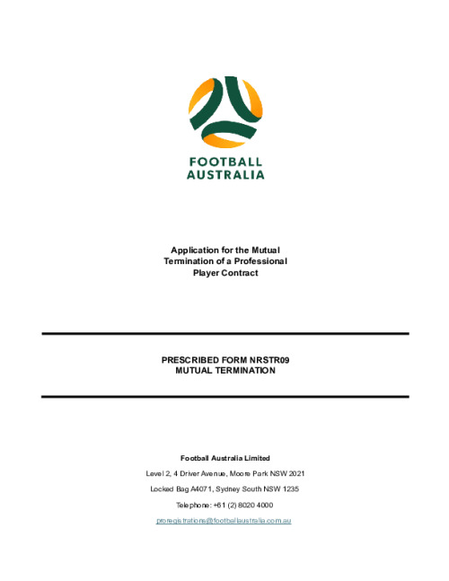 Name Prescribed Form NRSTR09 - Mutual Termination Official Date Wednesday, September 10, 2025 - 09:45 Document File Document Prescribed Form NRSTR09 - Mutual Termination_1.pdf